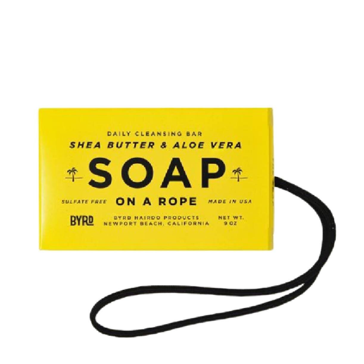 Daily Cleansing Bar + Don't Drop The Soap Fortified with coconut oil, shea butter, aloe vera gel and pacific sea salt, BYRD’S soap on a rope gently and effectively cleanses the skin without stripping away essential moisture. Its “tropical coconut” scent is a complex blend with notes of pineapple and vanilla. BYRD’S soap on a rope also features a 7” paracord for around the wrist when in use and for hanging conveniently in your shower when not. Don't drop the soap!