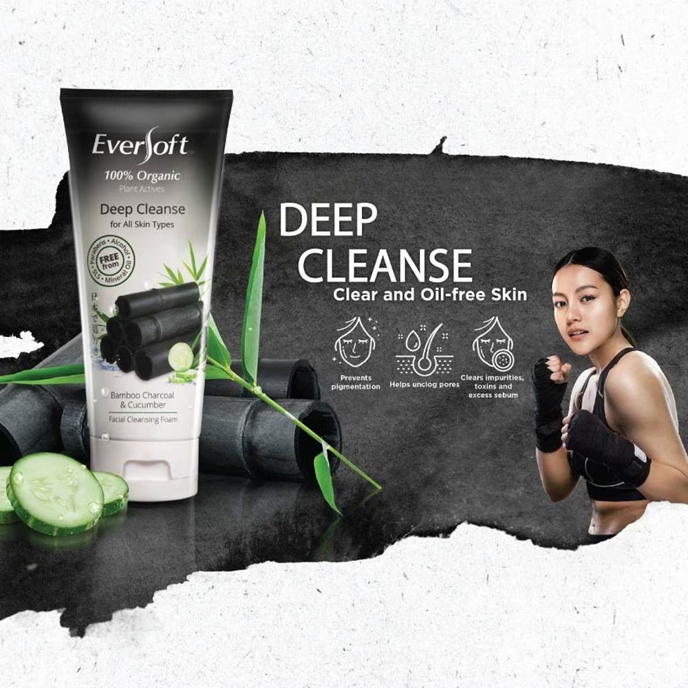 Nourishing and hydrating formula with bamboo charcoal extract and cucumber enriched with Vitamin C to help deep cleanse, clears impurities, toxins and excess sebum.Aids in skin lightening and helps prevent pigmenttation.