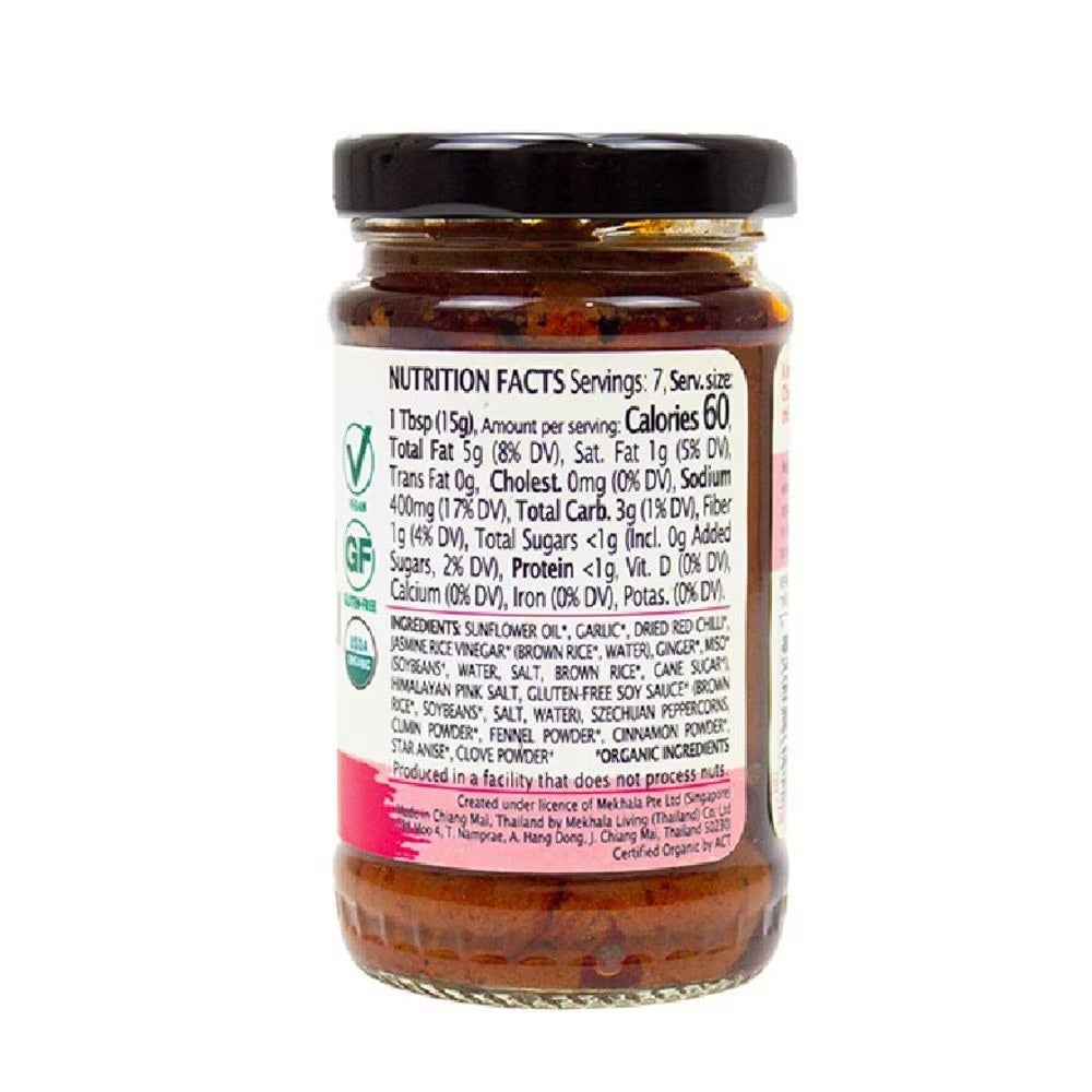 *Sunflower Oil, *Garlic, *Dried Red Chilli, *Jasmine Rice Vinegar, *Ginger, *Miso (*Soybeans, Water, Salt, *Brown Rice, *Cane Sugar), Himalayan Pink Salt, *Gluten-Free Soy Sauce (*Brown Rice, *Soybeans, Salt, Water), Szechuan Peppercorns, *Cumin Powder, *Fennel Powder, *Cinnamon Powder, *Star Anise, *Clove Powder