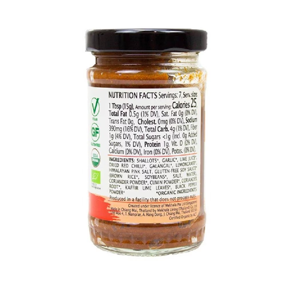 *Shallots, *Garlic, *Lime Juice, *Dried Red Chilli, *Galangal, *Lemongrass, Himalayan Pink Salt, **Gluten-Free Soy Sauce (*Brown Rice, *Soybeans, Salt, Water), *Coriander Seeds, *Cumin Seeds, *Coriander Root, *Black Peppercorns