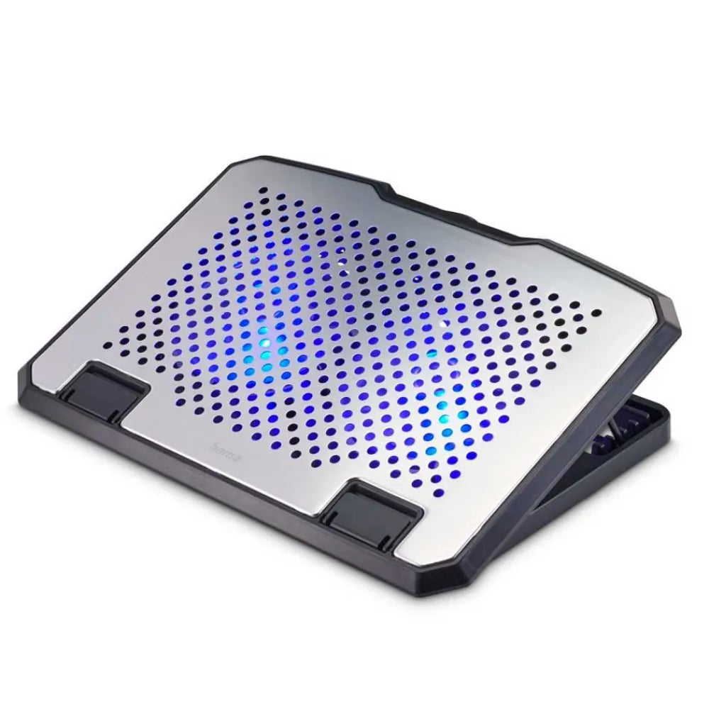 Keep your laptop running smoothly even during intense work or entertainment sessions. Crafted with a sleek aluminium top, this cooling base boosts airflow to prevent overheating, while its dual 125 mm fans—illuminated by soft blue LEDs—create an eye-catching yet functional design