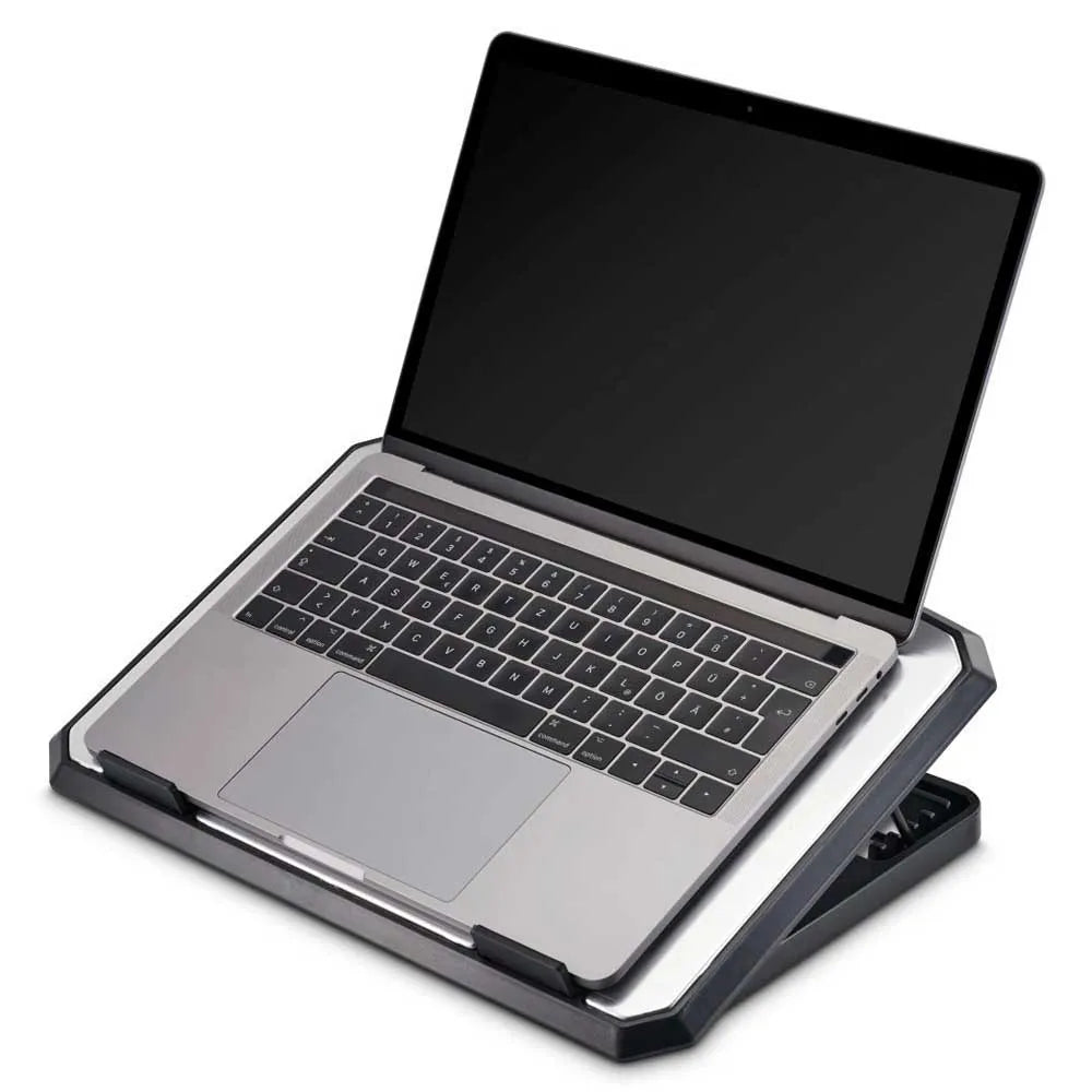 Stable, damage-free use Rubberized, non-slip feet keep both cooler and laptop secure. Fold-out stoppers prevent any sliding, and the ventilated aluminium surface ensures your notebook stays well‑air‑circulated