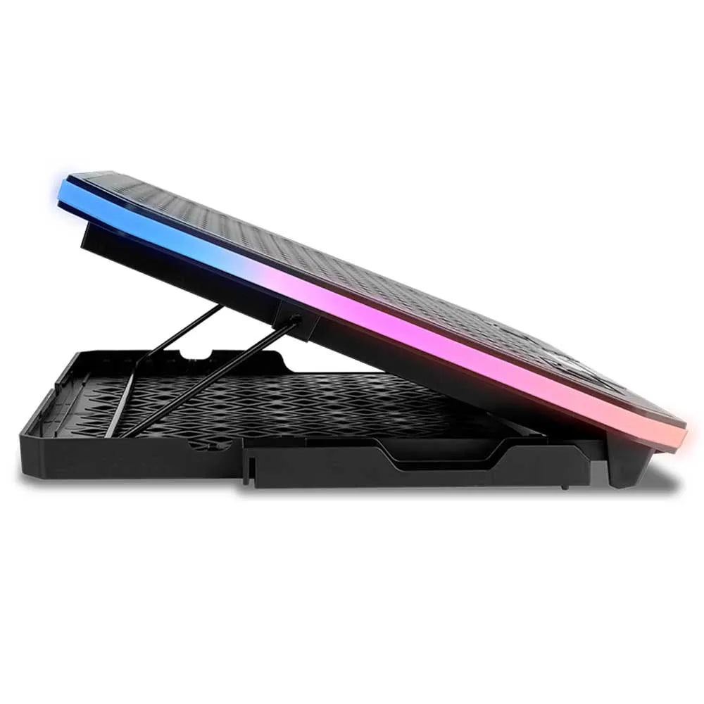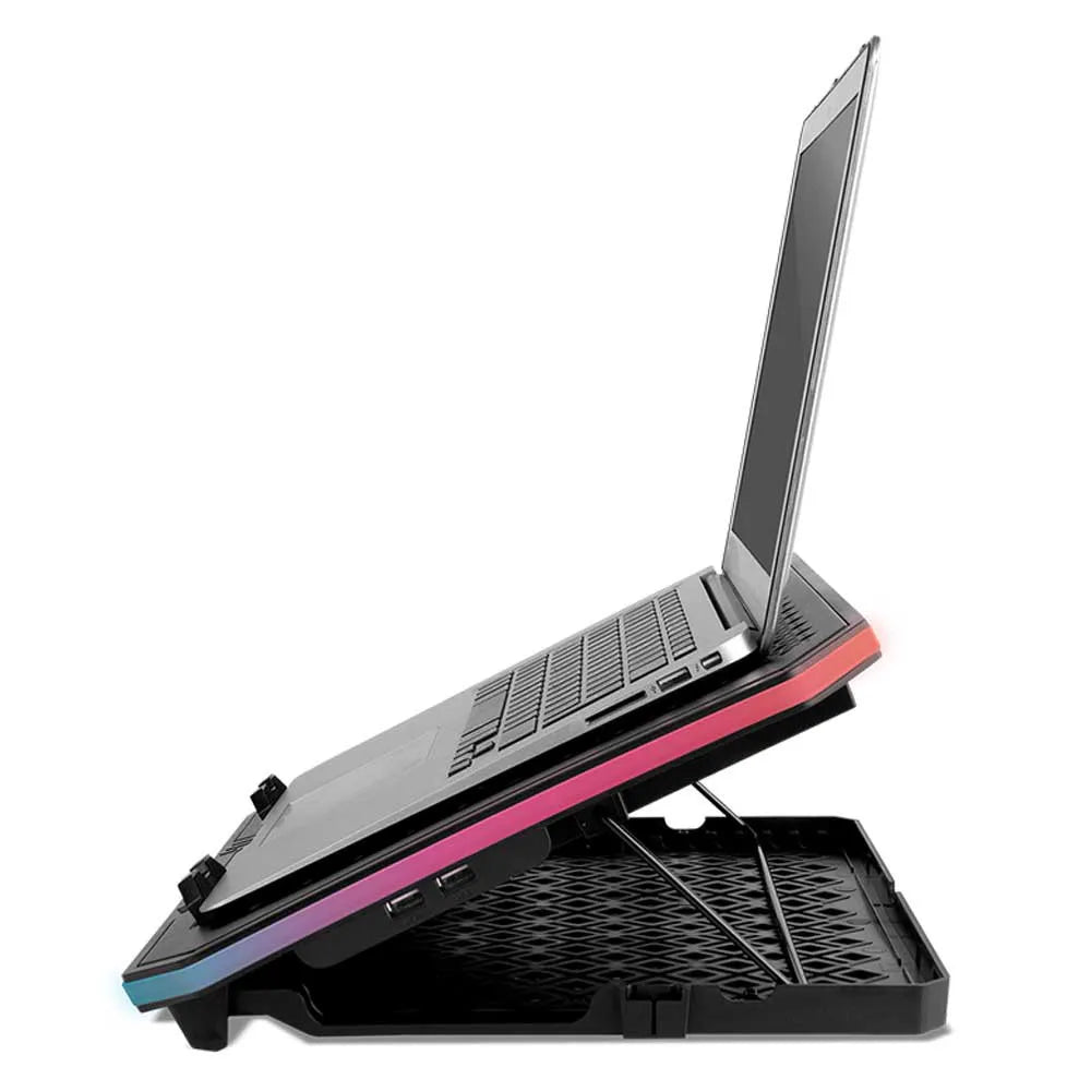 Introducing the Krom Kooler RGB Laptop Cooling Base – a premium solution designed to enhance your laptop's performance and aesthetics.Engineered for laptops ranging from 10" to 19", this cooling pad ensures optimal ventilation, keeping your device at the ideal temperature during intense gaming sessions or demanding task