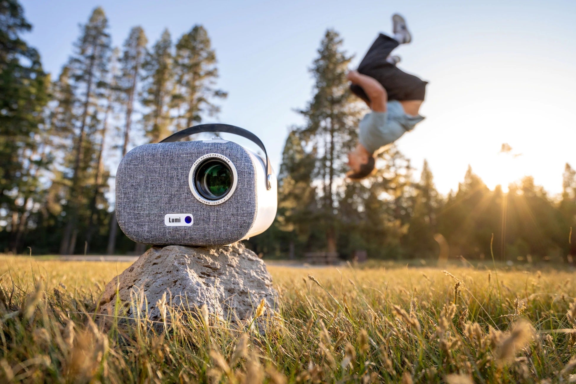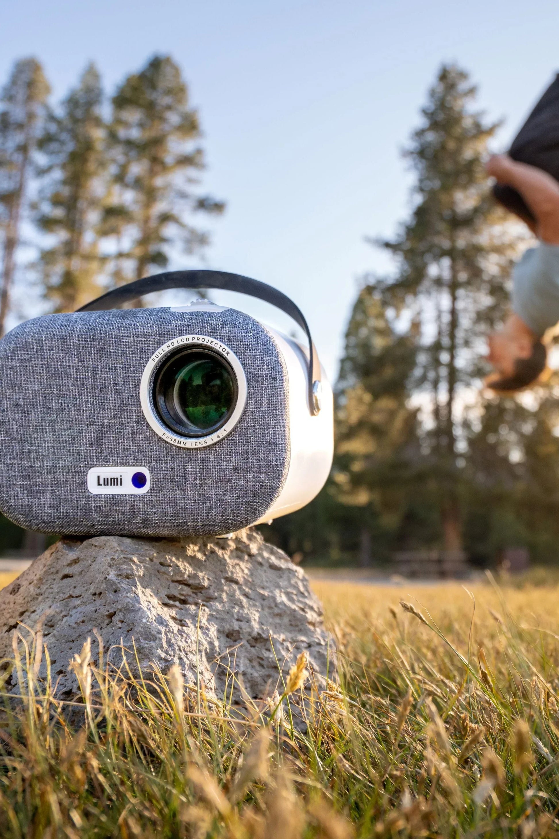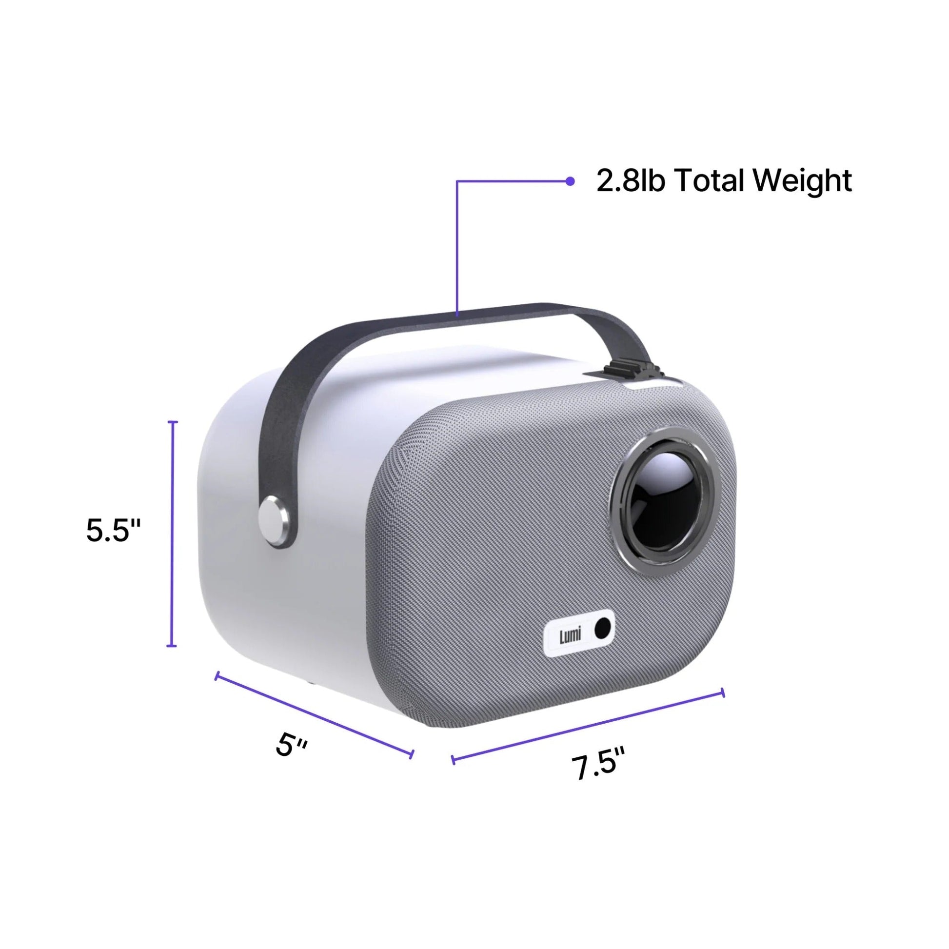 Compact & Portable Lightweight and modern, the LUMI-1 fits easily in any room — or take it on the go for outdoor movie nights. The built-in speaker lets you enjoy clear audio without external equipment, or connect to Bluetooth speakers for an upgraded sound experience.