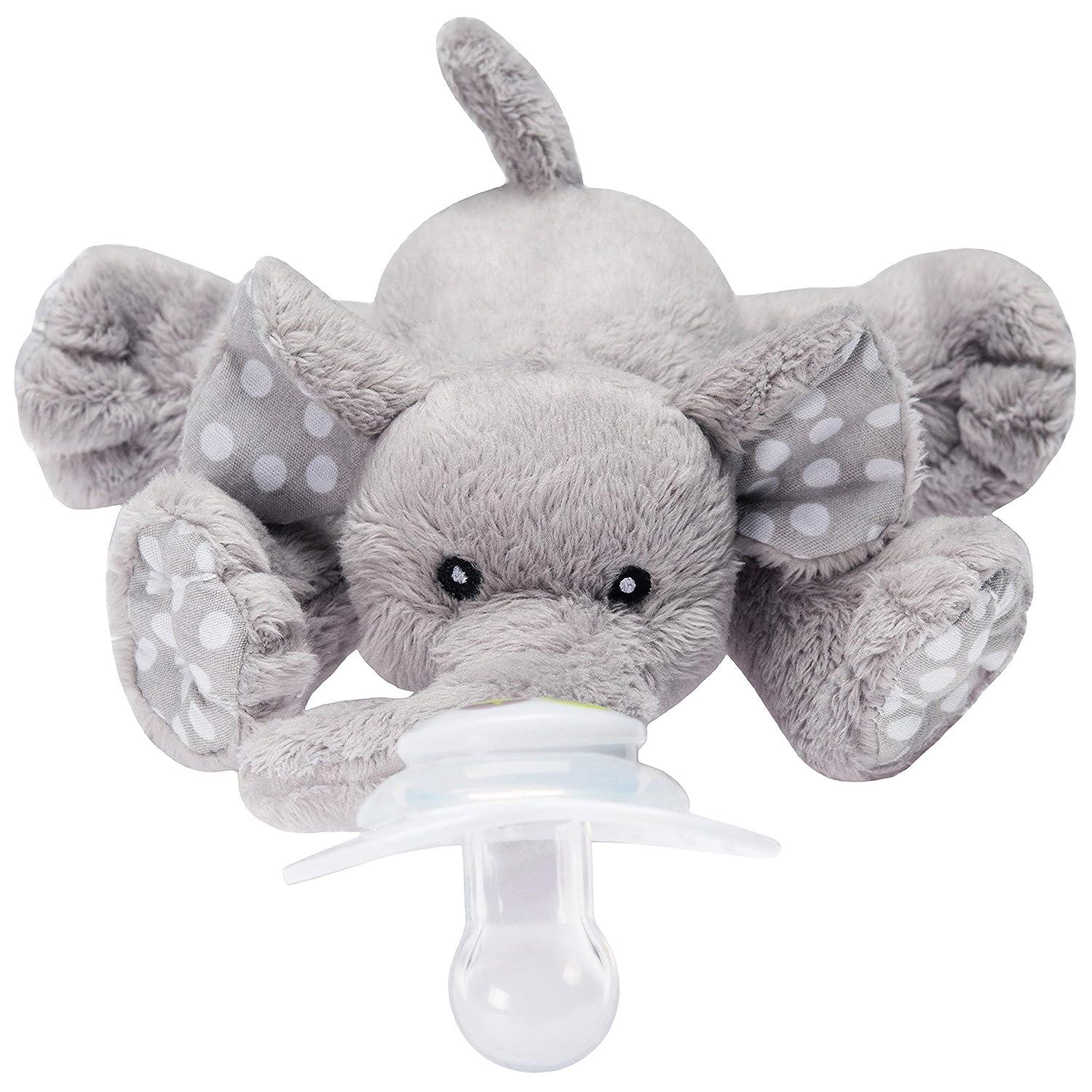 Paci-Plushies Buddies Adapts to Name Brand Pacifiers Suitable for All Ages Plush Toy Includes Detachable Pacifier (Ella The Elephant)