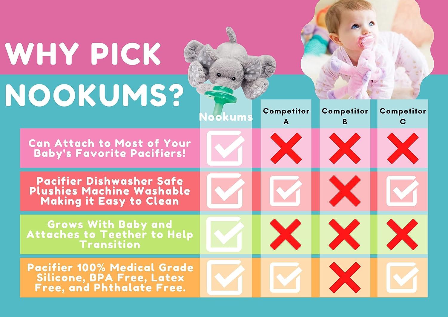 HELPS WITH TRANSITION - When baby outgrows the pacifier, the Paci-Plushies toy helps to ease the transition. Pacifier detaches for replacement & sanitation. Plush is machine washable. GROWS WITH BABY - Turn any Paci-Plushies Plush Toy into a Chillable Teether with our Chillies Teether Add-On. Chillies Teethers are filled with purified water and store in the fridge. These lightweight chillables help to soothe tender gums and boo-boos for children of all ages. Attach your favorite Paci-Plushie and baby will enjoy the cool teether while keeping their fingers warm with their favorite plush (sold separately). HELPS WITH FINE MOTOR SKILLS - Paci-Plushies Plush Toys make it easier for babies to independently maneuver the pacifier at a younger age. Our huggable designs are sized for little hands and textured for touch and exploration. EASILY REPLACE PACIFIERS - Each Paci-Plushie includes a Nookums Pacifier that detaches from the animal for easy replacement & sanitation. Use our Nookums Pacifier or swap it out for your own. Paci-Plushies Pacifier Holders have a flexible Hug Ring that attaches to a variety of baby's favorite pacifiers and is compatible with: Mam, Avent, NUK and many more. Please Note: Paci-Plushies are compatible with most but not all pacifiers. Paci-Plushies work best with pacifiers that have a button shield. STOP LOST PACIFIERS - Paci-Plushies make finding baby's pacifier a snap! Eliminate the stress of searching for lost pacifiers.