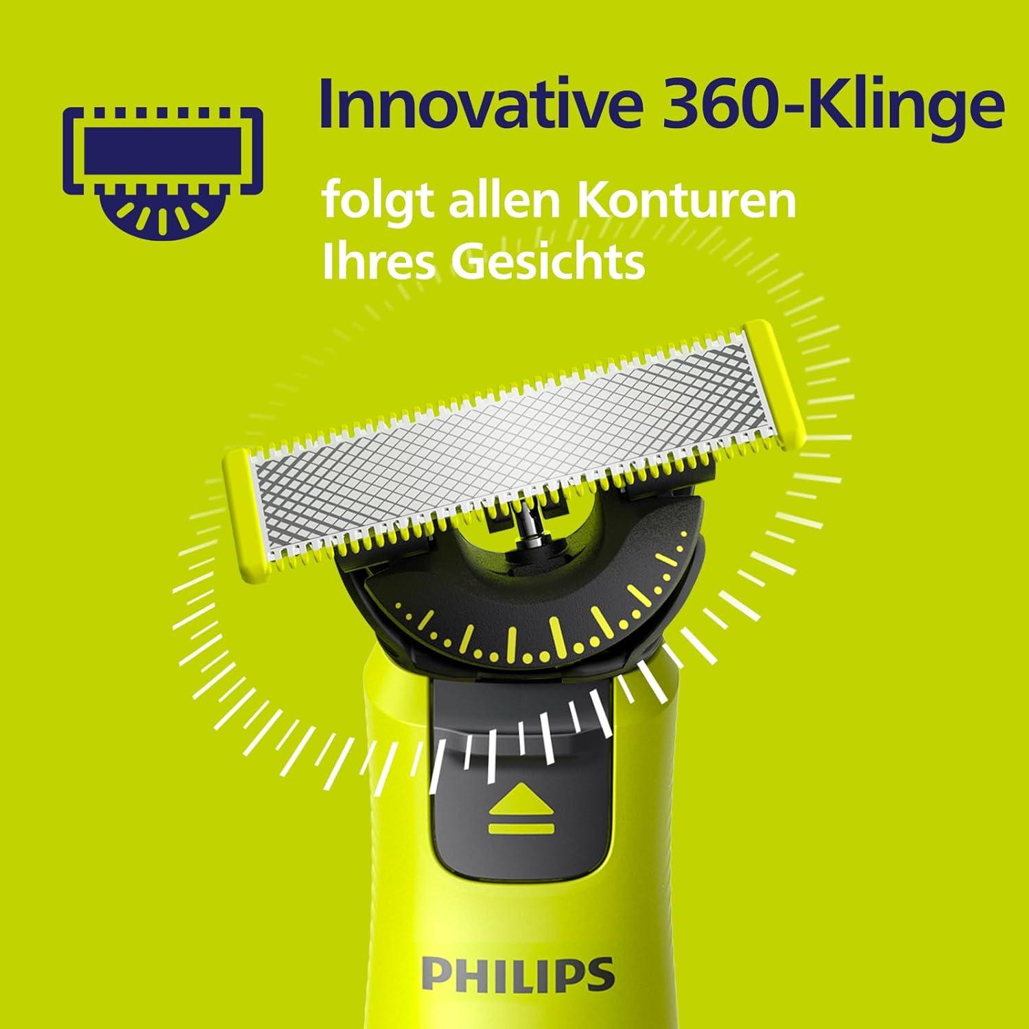 The Set includes: 12-month inn in stock of blades (3x 360-degree blades).Recyclable² pack on paper.Get ready even with the longest hair.The sliding coating and the rounded tips protect your skin Not too close for a comfortable shave.Trimming, styling and shaving for every hair length with fewer trains and more comfort.The innovative 360 blade can be moved in all directions in order to adapt to your facial contours The design enables constant skin contact and good control.Three stainless steel blades are enough for up to 12 months¹.The authentic philips sound onblade that fit on all onblade and unblade per models .