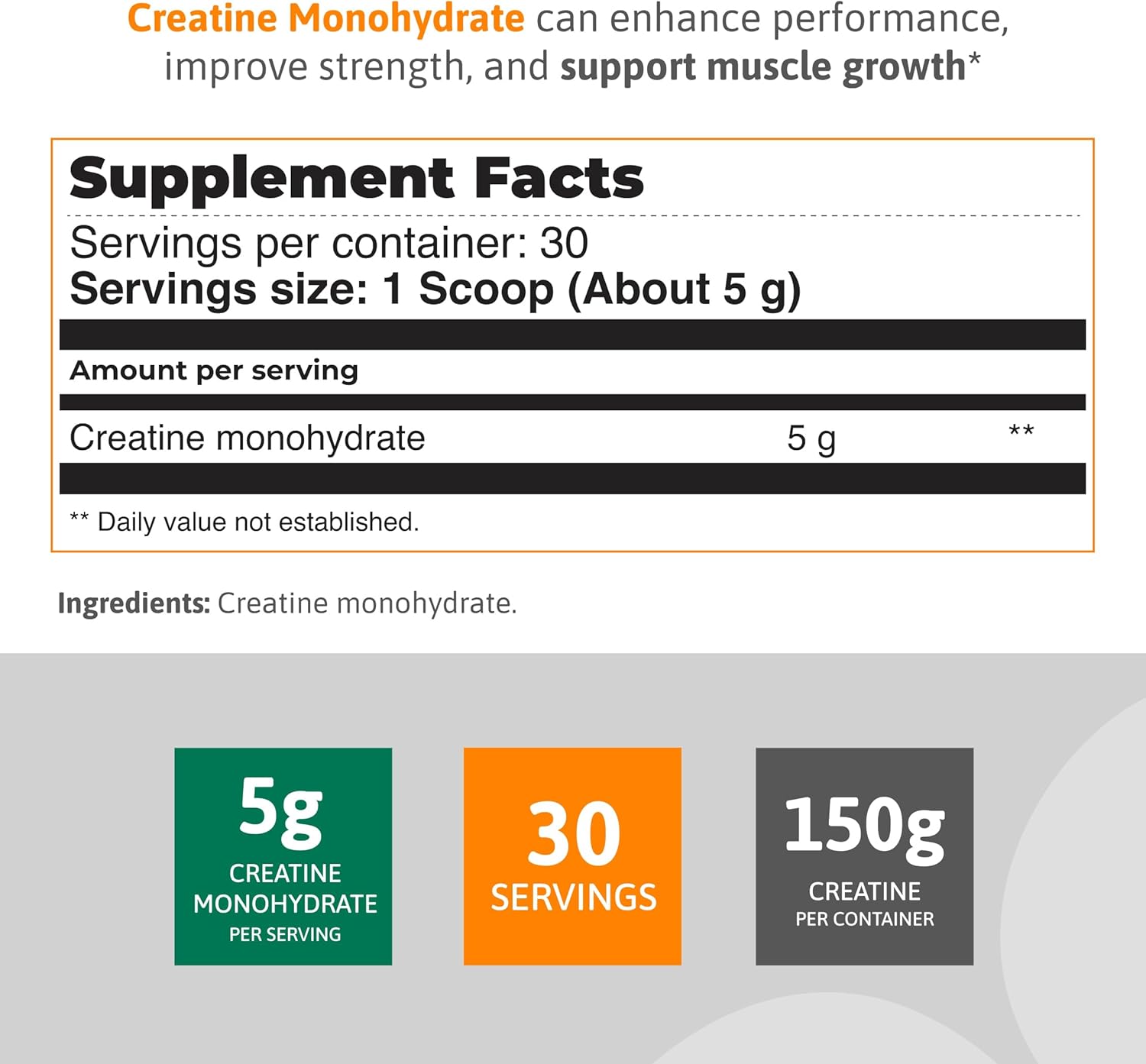Real Fitness Creatine Monohydrate, 5.3oz, Unflavored Powder