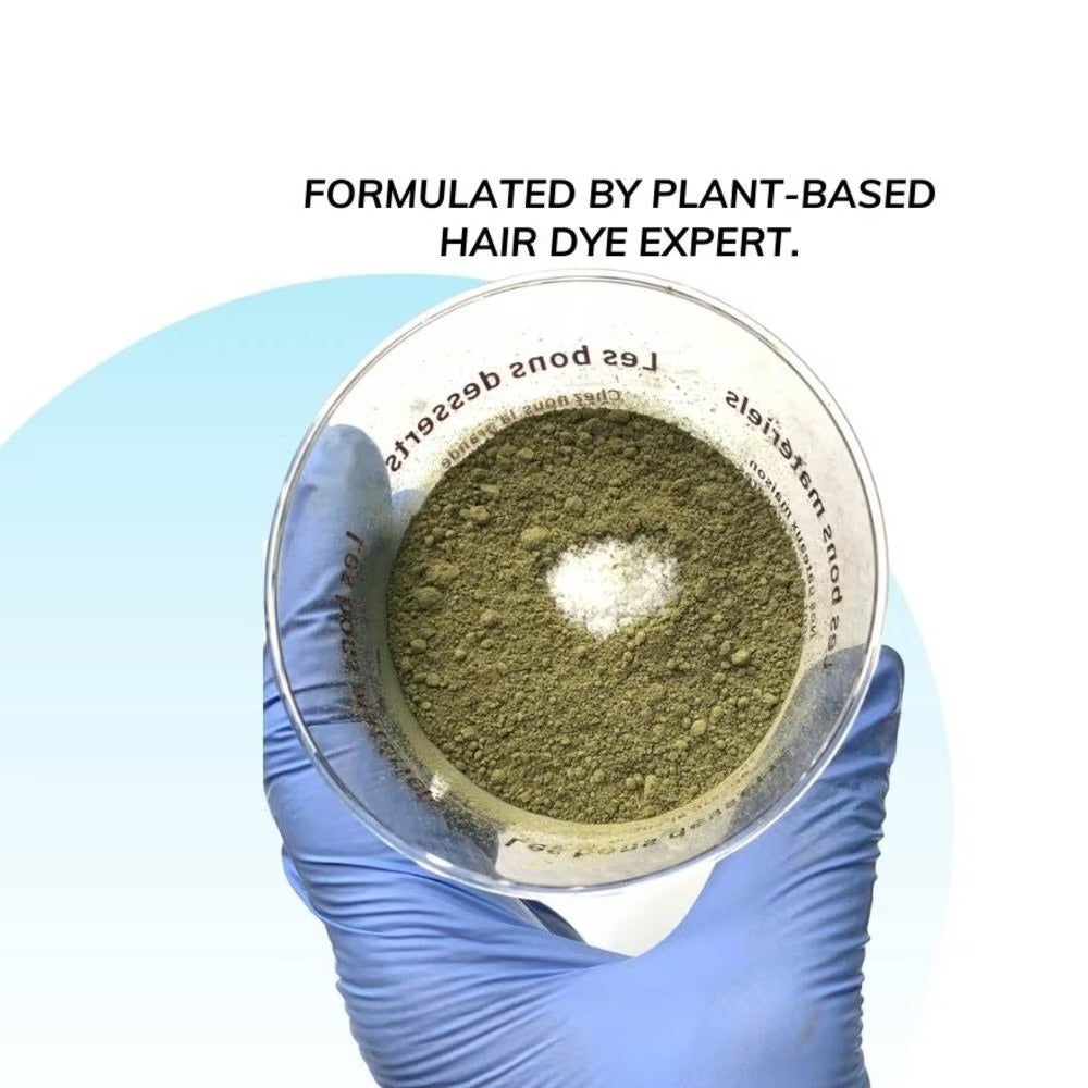 SVA Noor Henna leaf powder, SVA Noor Indigo leaf Powder, Lux Grande Fruit acid powder, 1 Pair Nitrile Gloves, Distilled Water, Instructions manual.