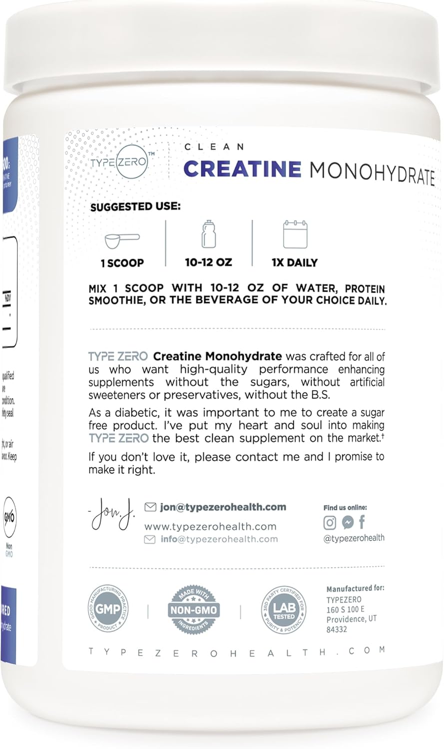 Enhance your training and recovery with Type Zero Creatine Monohydrate a clean, high-quality supplement formulated to support peak performance without compromise. Each serving delivers 5000mg of pure, micronized creatine to fuel your muscles, improve strength, and increase endurance.