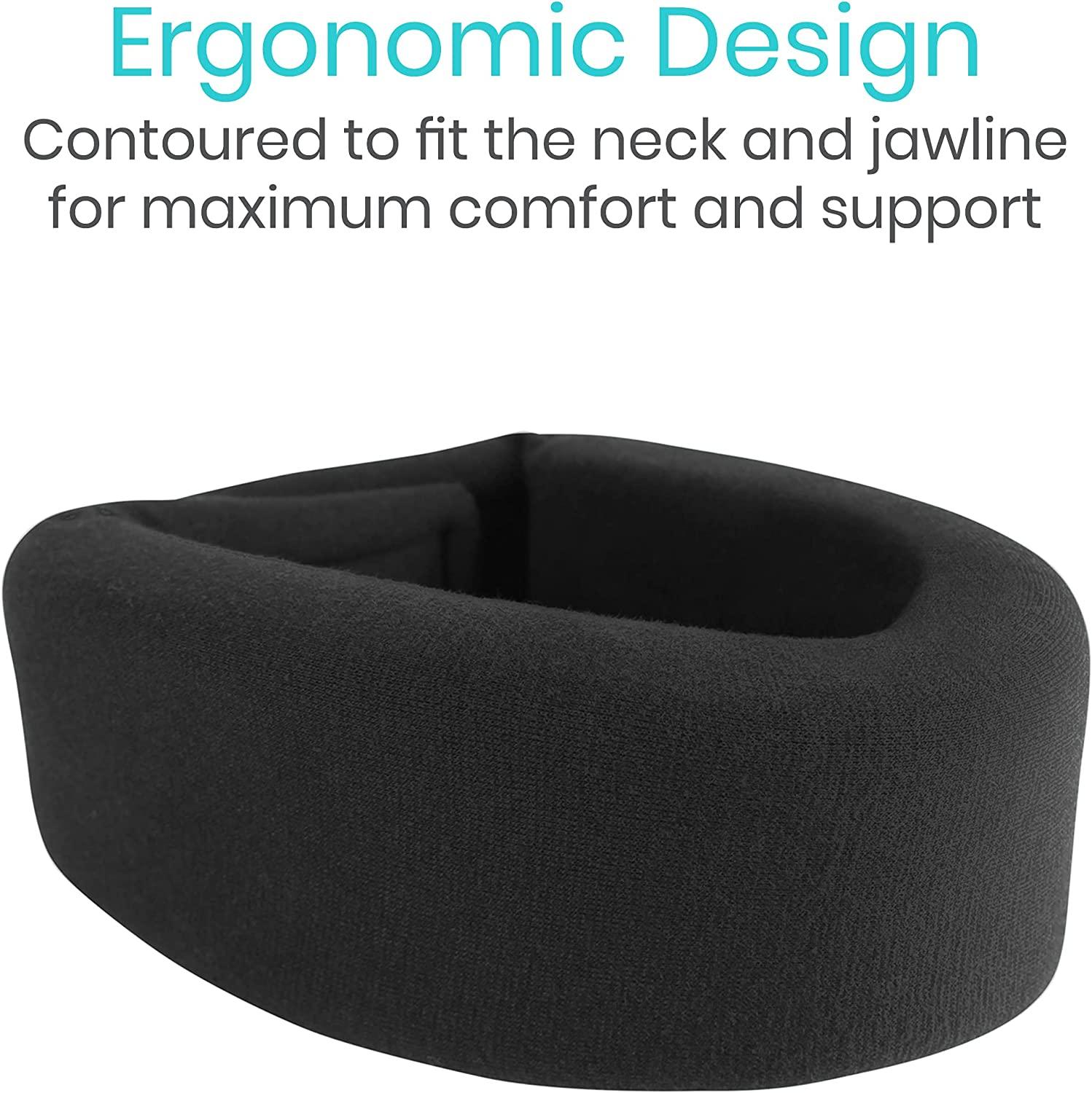 Cervical collar supports the jaw and neck while limiting mobility to relieve pain and pressure in the spine. Realigning and stabilizing vertebrae, the soft foam collar can be worn throughout the day and while sleeping for superior support and pain relief. The non-rigid neck brace will also relieve headaches caused by cervical strains and sprains. Useful for post-operative rehabilitation and injury support.