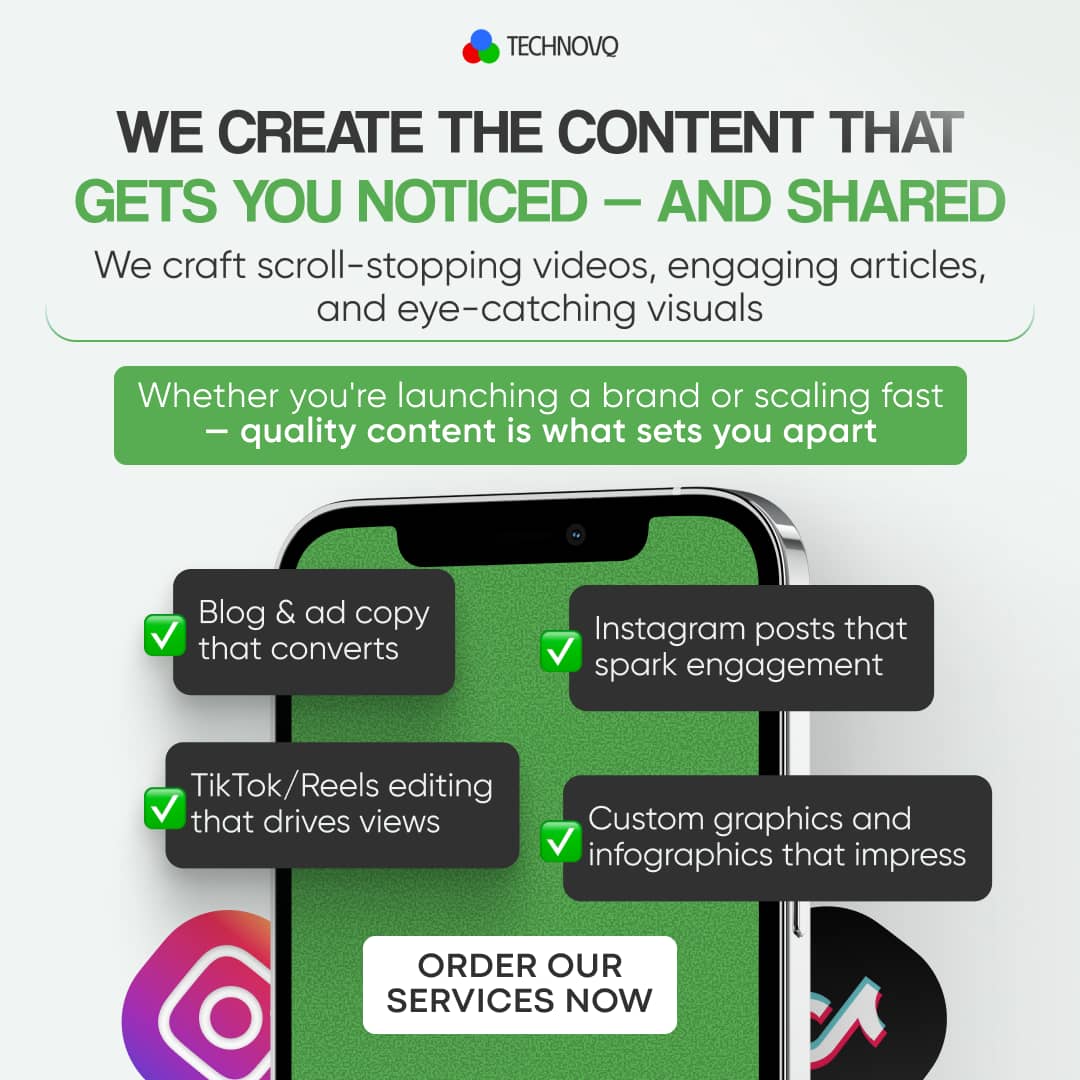 ✔️ TikTok/Reels editing that drives views ✔️ Instagram posts that spark engagement ✔️ Blog & ad copy that converts ✔️ Custom graphics and infographics that impress