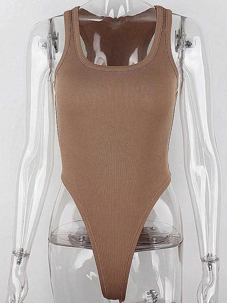 The soft knit fabric—typically a blend of polyester and spandex—offers four-way stretch and a figure-hugging silhouette that moves with you. Its sleeveless cut and breathable material keep you cool during warm-weather nights or when dancing the night away. Easy-care, machine-washable, and available in multiple colors like black, khaki, and white, this bodysuit is a staple piece for modern wardrobes.