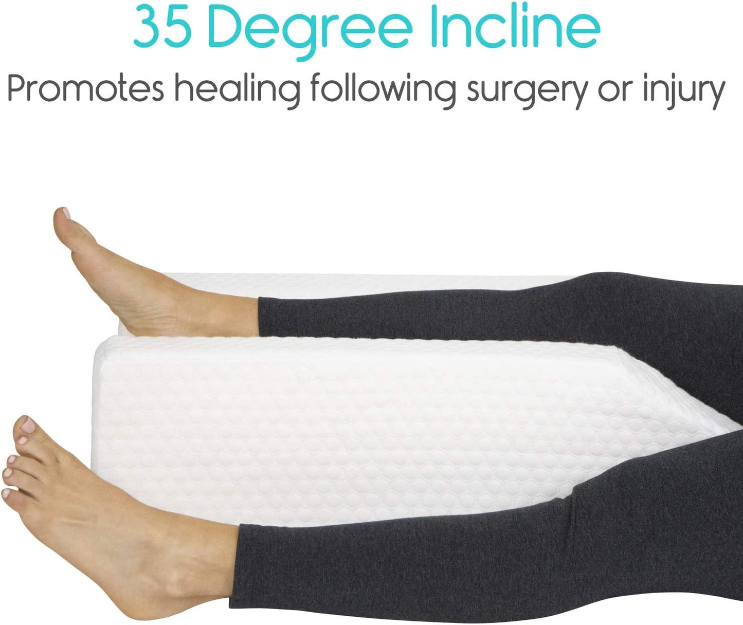 Xtra- Comfort Leg Elevation Pillow - for Swelling Elevating Post Surgery Recovery Support - Firm Wedge Rest - Breathable for Knee Ankle and Foot Injury Pain Relief - Improve Circulation and Sleep White